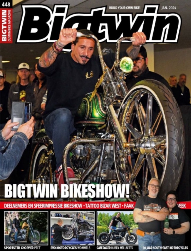 Bigtwin: bouwen, rijden, leven! Al zolang motorfietsen bestaan, transformeren wij ze tot kunstwerken. Van paintjobs tot 'choppen', onze passie voor customizen kent geen grenzen. Bij Bigtwin geven we getalenteerde custombouwers een podium om motorrijders te inspireren hun eigen stempel op hun motorfiets te drukken.